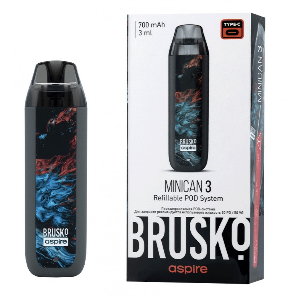Перезаправляемая Под-Система Бруско Миникан 3 (Brusko Minican 3) 700 mah, Серый Флюид - купить в Михайловске